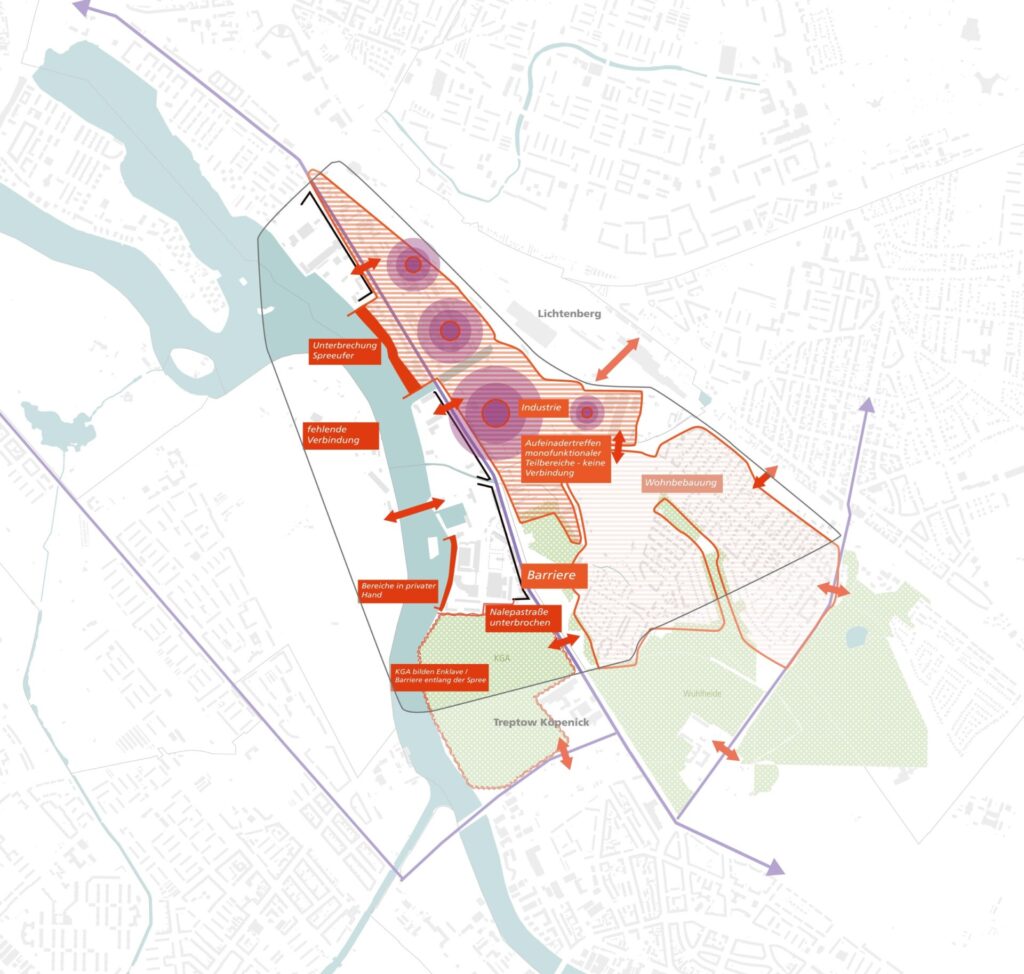 Unter Federführung des Stadtentwicklungsamtes Lichtenberg von Berlin wurde ein bezirksübergreifendes Entwicklungskonzept „Spreeküste“ entwickelt. Zwischen der Berliner Innenstadt und dem Flughafen BER gelegen wird dieser Teil des Spreeufers besonders attraktiv für eine hochwertige gewerbliche, aber auch kreative und künstlerische Entwicklung. Ziel war die Erarbeitung eines städtebaulichen Leitbildes unter Einordnung der kleinräumigen städtebaulichen Entwicklungen im Kontext zur Gesamtstadt. Die Einbindung der Grundstückseigentümer sowie der Bürger*innen vor Ort war ein wesentlicher Bestandteil partizipationsorientierter Planung.