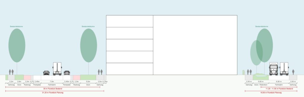 Ziel der Studie war es zu prüfen, inwiefern eine Gewerbenutzung im nördlichen Bereich städtebaulich und funktional umgesetzt und wie der südliche Bereich langfristig sinnvoll erschlossen und neu geordnet werden kann, um den Anforderungen an ein zeitgemäßes Gewerbegebiet gerecht werden zu können. Hierfür wurden unterschiedliche Szenarien für den Gesamtraum erarbeitet. Auf Grundlage eines Vorzugsszenarios wurden Erschließungs- und Bebauungsvarianten für den nördlichen Bereich erstellt, die schließlich in einer Vorzugsvariante ausgearbeitet wurden und durch thematische Nebenkarten inhaltlich gerahmt wurden. Die Erarbeitung erfolgte hierbei stets in direkten und regelmäßigen Austausch mit den AuftraggeberInnen sowie den zuständigen Fachämtern des Bezirks Steglitz-Zehlendorf. Der erarbeitete Entwurf des Gewerbehofs entlang der Goerzallee soll als Grundlage für ein darauffolgendes Bebauungsplanverfahren dienen.